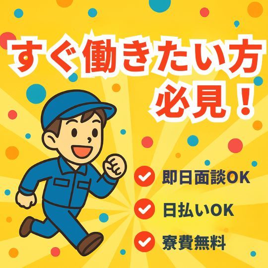 即日面談OK・日払いアリ・寮費はずっと無料だから、応募から新生活まであっという間!